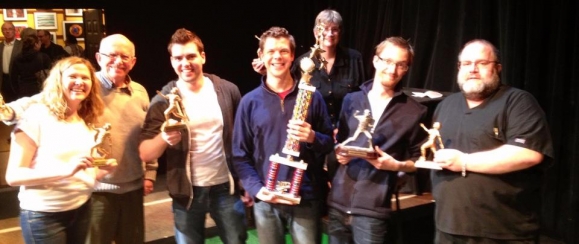 The group deemed best Saturday night was called the Far-Off Broadway Bombers. Their playlet, “The Games,” was written by C. Neil Parsons, directed by Brian Donnelly and Benita Brown, and performed by Anthony Bradburn, Katie Becker, and David Sheehan.