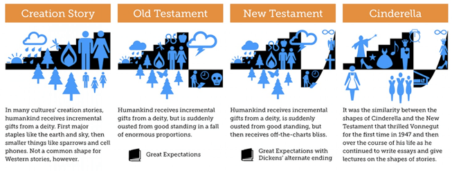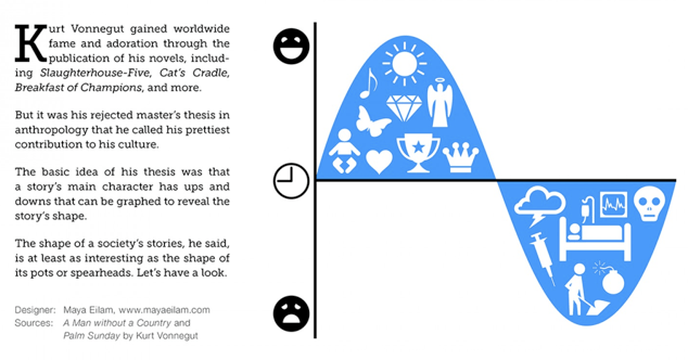 As a student at the University of Chicago, Kurt Vonnegut wanted to let academe know that the plots for fictional stories can be represented as graphs. You know, the visual aids that we normally associate with economists, behavioral psychologists, and other illusionists.